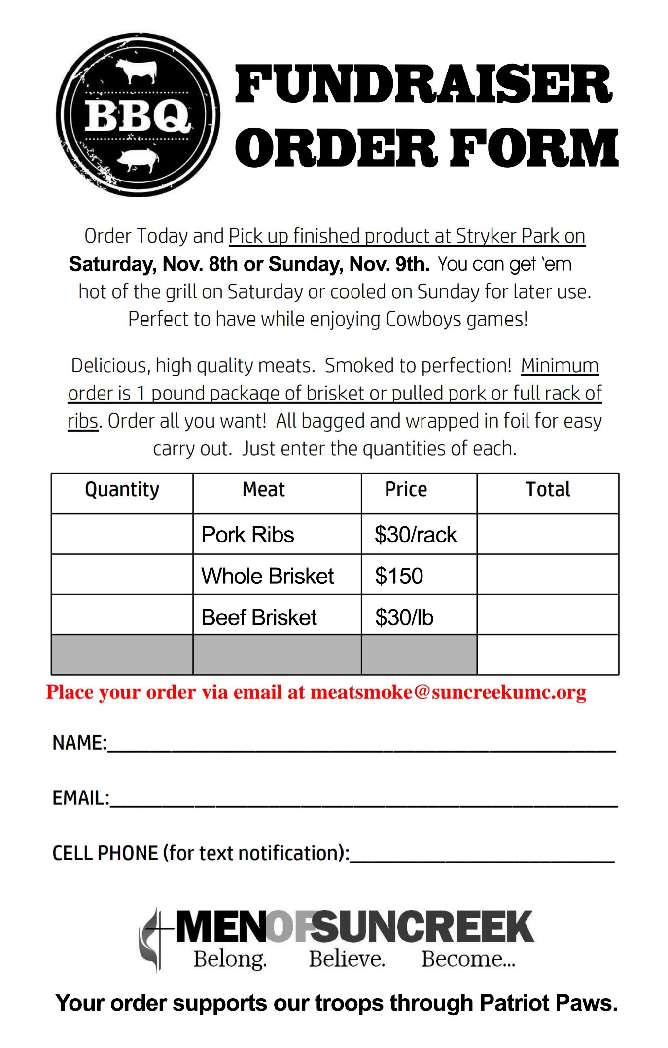Meat Smoke Order Form Beef briskets and pork ribs smoked all night on November 7th.
